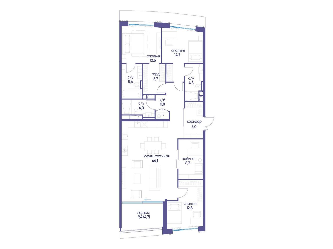 4 комнатная квартира