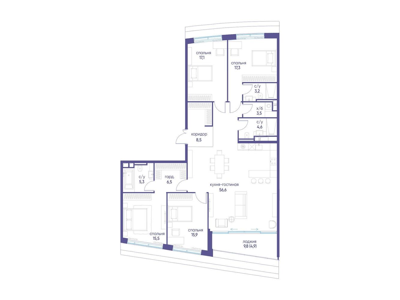 Продаётся четырехкомнатная квартира от застройщика: общая площадь 158.92 м², жилая 65.80 м², кухня 56.60 м², 18, жилой квартал «Остров 7», корпус 4 (7 квартал) (секция 3). срок сдачи: 4-кв. 2025. , 3 санузла: 3 совмещенных. В жилой зоне 2 больших окна на одну сторону, хорошая инсоляция. Позвоните сейчас и забронируйте квартиру! Купите квартиру в доме у прибрежного парка, в квартале ОСТРОВ.7. Это семь корпусов премиум- и бизнес-класса в одном из лучших мест ОСТРОВА - между бульваром и парком, поблизости от реки. Стильные корпуса имеют узнаваемый вид благодаря бионической пластике фасадов, приподнятых над землей. Для жителей предусмотрены детский клуб, фитнес-рум, коворкинг, переговорные, лаунжи. На крышах устроены видовые общественные пространства с зонами для отдыха и спорта. Двор расположен на двух уровнях: нижний ландшафтный парк и верхняя городская терраса. ОСТРОВ.7 - часть жилого комплекса на западе Москвы, в 15 минутах езды от центра. Это настоящий заповедник посреди большого города, в окружении реки и 650 га заповедников. Здесь все необходимое находится по соседству: от детского сада до супермаркета, от фитнес-зала до серфинг-центра. На территории созданы все условия для отдыха и общения: клубная инфраструктура в домах и дворы-парки, набережные и променады, маршруты для спортсменов, детей и возрастных жителей. В нескольких минутах ходьбы расположена станция метро "Терехово" БКЛ. На автомобиле - 10 минут до Москва-Сити и 15 минут до Садового кольца.