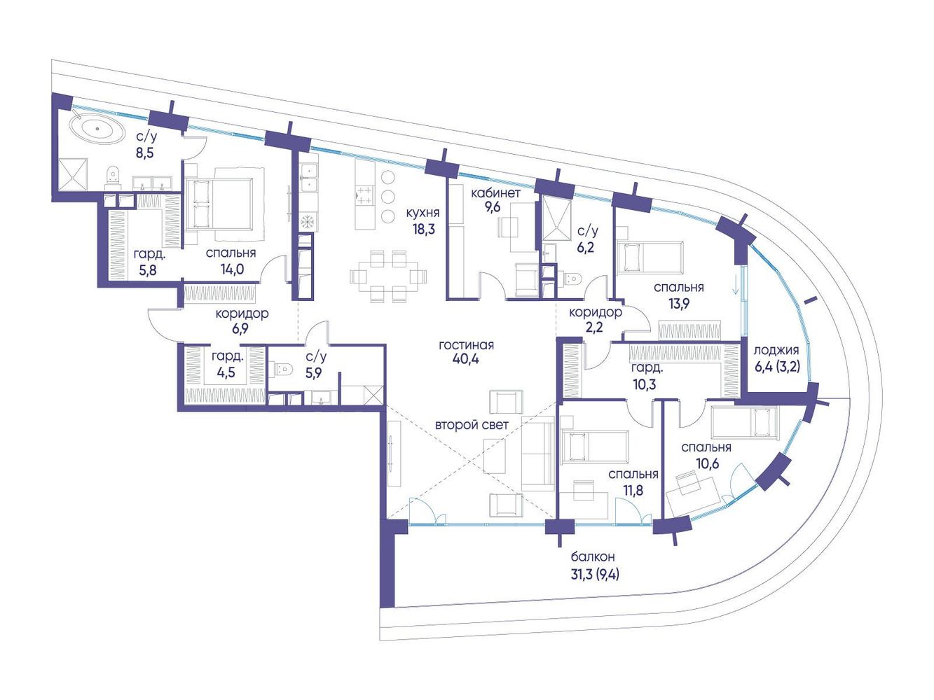6 комнатная квартира