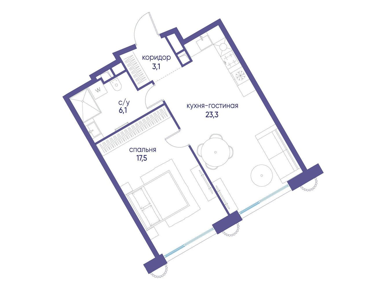 Продаётся однокомнатная квартира от застройщика: общая площадь 50.02 м², жилая 17.50 м², кухня 23.30 м², 17, жилой квартал «Остров 7», корпус 7 (7 квартал) (секция 2). срок сдачи: 4-кв. 2025. , 1 совмещенный санузел. В жилой зоне 2 больших окна на одну сторону, хорошая инсоляция. Позвоните сейчас и забронируйте квартиру! Купите квартиру в доме у прибрежного парка, в квартале ОСТРОВ.7. Это семь корпусов премиум- и бизнес-класса в одном из лучших мест ОСТРОВА - между бульваром и парком, поблизости от реки. Стильные корпуса имеют узнаваемый вид благодаря бионической пластике фасадов, приподнятых над землей. Для жителей предусмотрены детский клуб, фитнес-рум, коворкинг, переговорные, лаунжи. На крышах устроены видовые общественные пространства с зонами для отдыха и спорта. Двор расположен на двух уровнях: нижний ландшафтный парк и верхняя городская терраса. ОСТРОВ.7 - часть жилого комплекса на западе Москвы, в 15 минутах езды от центра. Это настоящий заповедник посреди большого города, в окружении реки и 650 га заповедников. Здесь все необходимое находится по соседству: от детского сада до супермаркета, от фитнес-зала до серфинг-центра. На территории созданы все условия для отдыха и общения: клубная инфраструктура в домах и дворы-парки, набережные и променады, маршруты для спортсменов, детей и возрастных жителей. В нескольких минутах ходьбы расположена станция метро "Терехово" БКЛ. На автомобиле - 10 минут до Москва-Сити и 15 минут до Садового кольца.