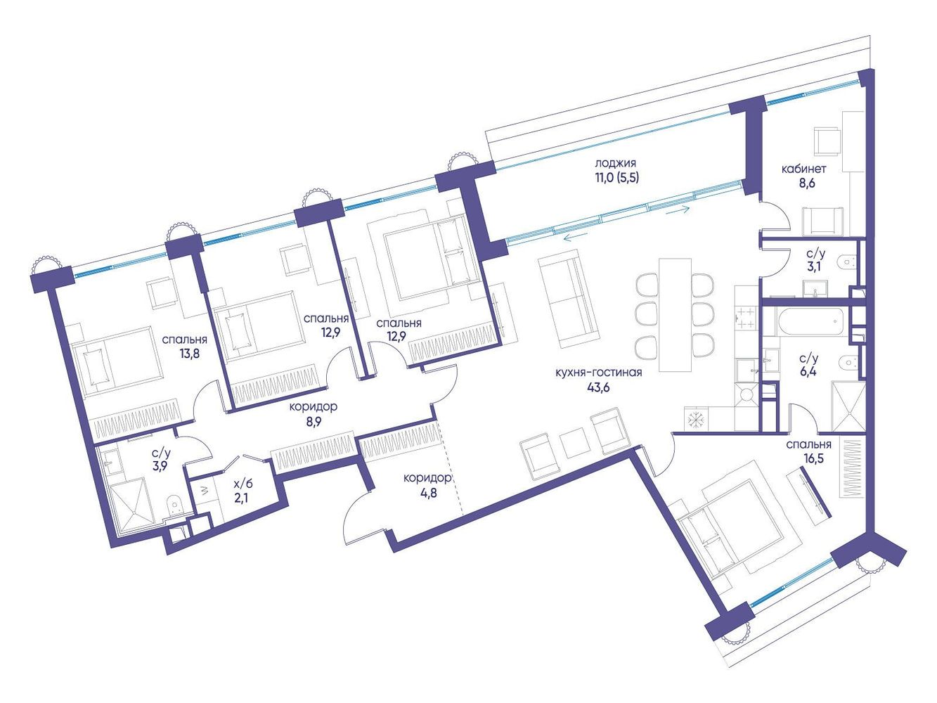 5 комнатная квартира