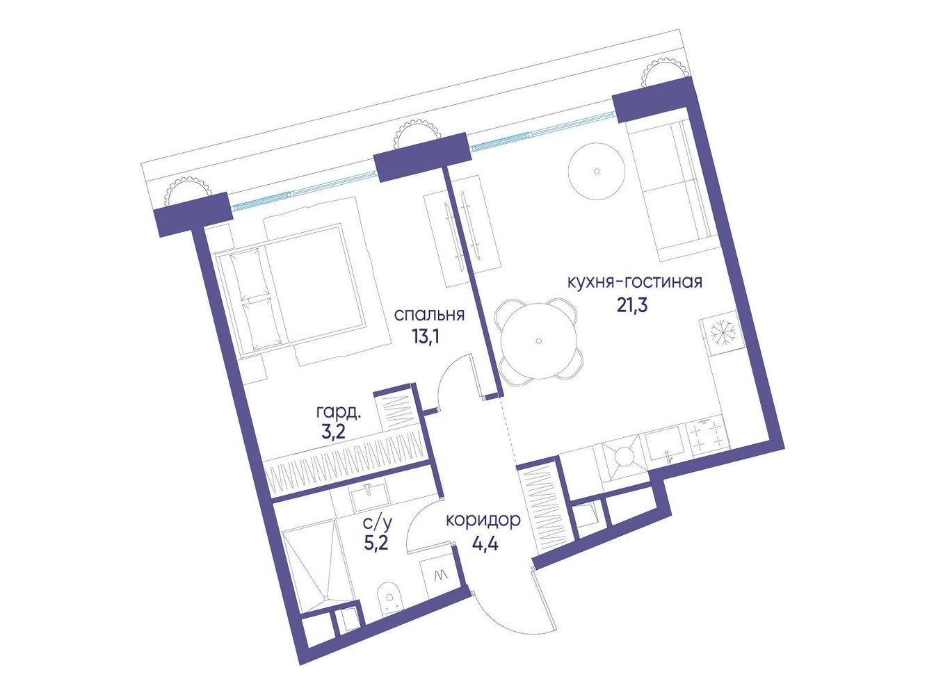 Продаётся однокомнатная квартира от застройщика: общая площадь 47.32 м², жилая 13.10 м², кухня 21.30 м², 17, жилой квартал «Остров 7», корпус 7 (7 квартал) (секция 2). срок сдачи: 4-кв. 2025. , 1 совмещенный санузел. В жилой зоне 2 больших окна на одну сторону, хорошая инсоляция. Позвоните сейчас и забронируйте квартиру! Купите квартиру в доме у прибрежного парка, в квартале ОСТРОВ.7. Это семь корпусов премиум- и бизнес-класса в одном из лучших мест ОСТРОВА - между бульваром и парком, поблизости от реки. Стильные корпуса имеют узнаваемый вид благодаря бионической пластике фасадов, приподнятых над землей. Для жителей предусмотрены детский клуб, фитнес-рум, коворкинг, переговорные, лаунжи. На крышах устроены видовые общественные пространства с зонами для отдыха и спорта. Двор расположен на двух уровнях: нижний ландшафтный парк и верхняя городская терраса. ОСТРОВ.7 - часть жилого комплекса на западе Москвы, в 15 минутах езды от центра. Это настоящий заповедник посреди большого города, в окружении реки и 650 га заповедников. Здесь все необходимое находится по соседству: от детского сада до супермаркета, от фитнес-зала до серфинг-центра. На территории созданы все условия для отдыха и общения: клубная инфраструктура в домах и дворы-парки, набережные и променады, маршруты для спортсменов, детей и возрастных жителей. В нескольких минутах ходьбы расположена станция метро "Терехово" БКЛ. На автомобиле - 10 минут до Москва-Сити и 15 минут до Садового кольца.