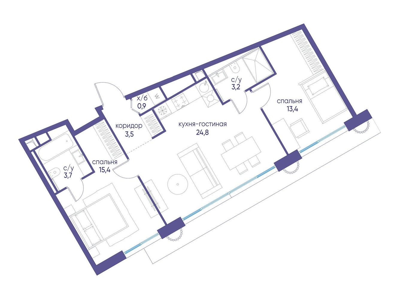 Продаётся двухкомнатная квартира от застройщика: общая площадь 64.32 м², жилая 28.80 м², кухня 24.80 м², 19, жилой квартал «Остров 7», корпус 7 (7 квартал) (секция 1). срок сдачи: 4-кв. 2025. , 2 санузла: 2 совмещенных. В жилой зоне 2 больших окна на одну сторону, хорошая инсоляция. Позвоните сейчас и забронируйте квартиру! Купите квартиру в доме у прибрежного парка, в квартале ОСТРОВ.7. Это семь корпусов премиум- и бизнес-класса в одном из лучших мест ОСТРОВА - между бульваром и парком, поблизости от реки. Стильные корпуса имеют узнаваемый вид благодаря бионической пластике фасадов, приподнятых над землей. Для жителей предусмотрены детский клуб, фитнес-рум, коворкинг, переговорные, лаунжи. На крышах устроены видовые общественные пространства с зонами для отдыха и спорта. Двор расположен на двух уровнях: нижний ландшафтный парк и верхняя городская терраса. ОСТРОВ.7 - часть жилого комплекса на западе Москвы, в 15 минутах езды от центра. Это настоящий заповедник посреди большого города, в окружении реки и 650 га заповедников. Здесь все необходимое находится по соседству: от детского сада до супермаркета, от фитнес-зала до серфинг-центра. На территории созданы все условия для отдыха и общения: клубная инфраструктура в домах и дворы-парки, набережные и променады, маршруты для спортсменов, детей и возрастных жителей. В нескольких минутах ходьбы расположена станция метро "Терехово" БКЛ. На автомобиле - 10 минут до Москва-Сити и 15 минут до Садового кольца.