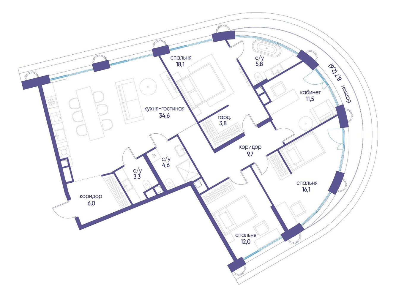 4 комнатная квартира