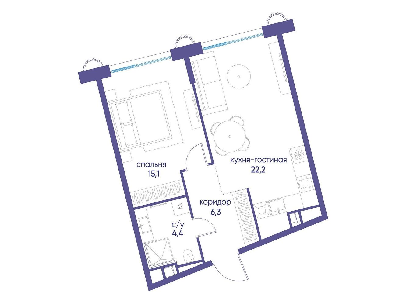 Продаётся однокомнатная квартира от застройщика: общая площадь 47.62 м², жилая 15.10 м², кухня 22.20 м², 17, жилой квартал «Остров 7», корпус 7 (7 квартал) (секция 1). срок сдачи: 4-кв. 2025. , 1 совмещенный санузел. В жилой зоне 2 больших окна на одну сторону, хорошая инсоляция. Позвоните сейчас и забронируйте квартиру! Купите квартиру в доме у прибрежного парка, в квартале ОСТРОВ.7. Это семь корпусов премиум- и бизнес-класса в одном из лучших мест ОСТРОВА - между бульваром и парком, поблизости от реки. Стильные корпуса имеют узнаваемый вид благодаря бионической пластике фасадов, приподнятых над землей. Для жителей предусмотрены детский клуб, фитнес-рум, коворкинг, переговорные, лаунжи. На крышах устроены видовые общественные пространства с зонами для отдыха и спорта. Двор расположен на двух уровнях: нижний ландшафтный парк и верхняя городская терраса. ОСТРОВ.7 - часть жилого комплекса на западе Москвы, в 15 минутах езды от центра. Это настоящий заповедник посреди большого города, в окружении реки и 650 га заповедников. Здесь все необходимое находится по соседству: от детского сада до супермаркета, от фитнес-зала до серфинг-центра. На территории созданы все условия для отдыха и общения: клубная инфраструктура в домах и дворы-парки, набережные и променады, маршруты для спортсменов, детей и возрастных жителей. В нескольких минутах ходьбы расположена станция метро "Терехово" БКЛ. На автомобиле - 10 минут до Москва-Сити и 15 минут до Садового кольца.