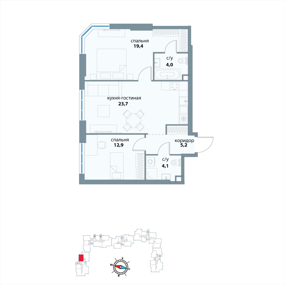 Новая двухкомнатная квартира в новостройке на 15-м этаже площадью 69.3 кв. м. Премиальный квартал в исторической локации и в трендовом месте, среди зелени парков на престижном западе Москвы, в 10 минутах от Воробьевых гор.