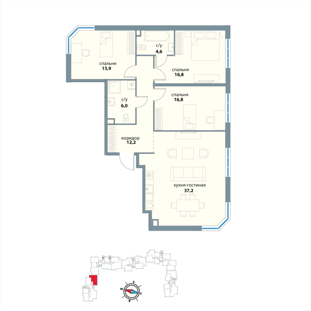 4 комнатная квартира