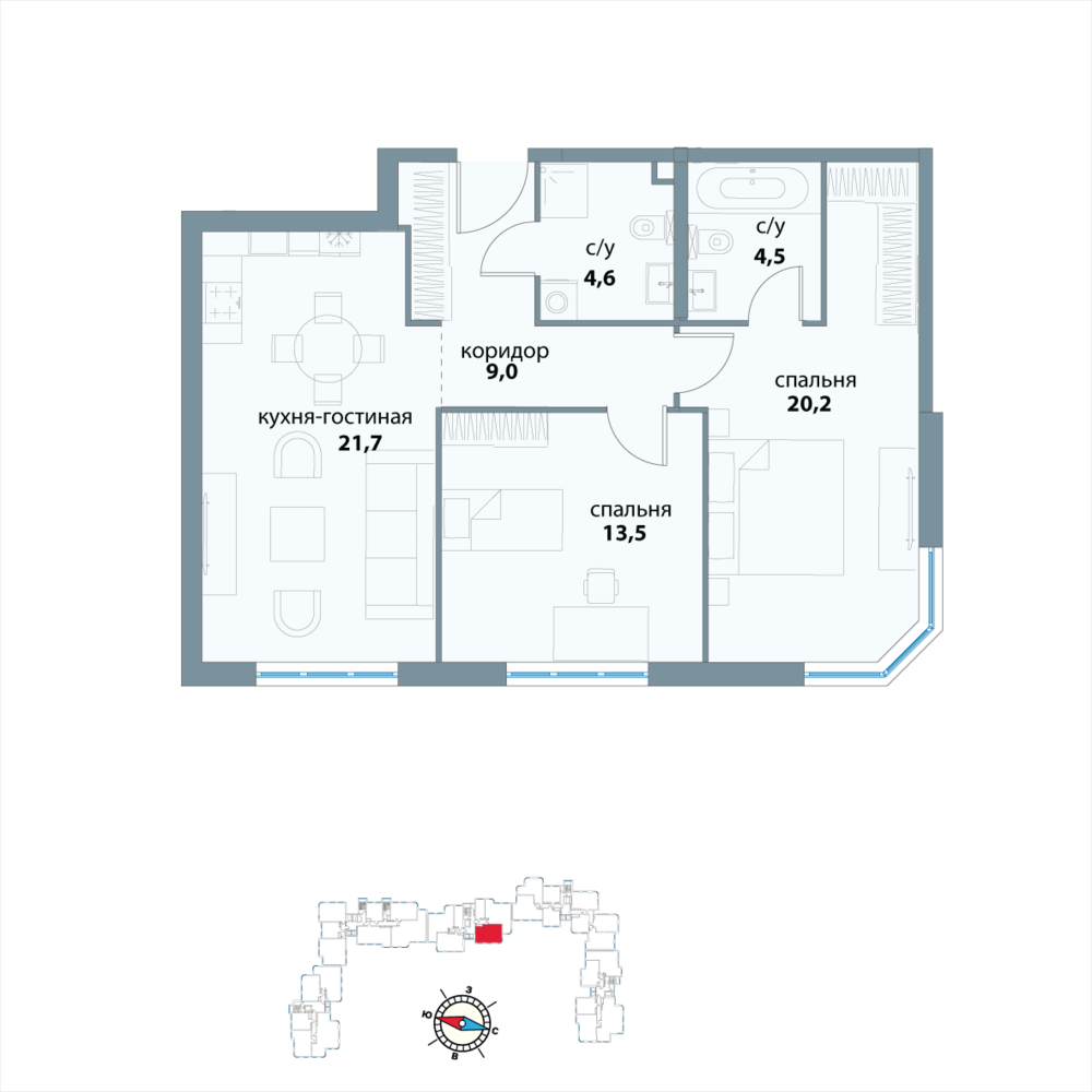 Общая площадь73.5 м2