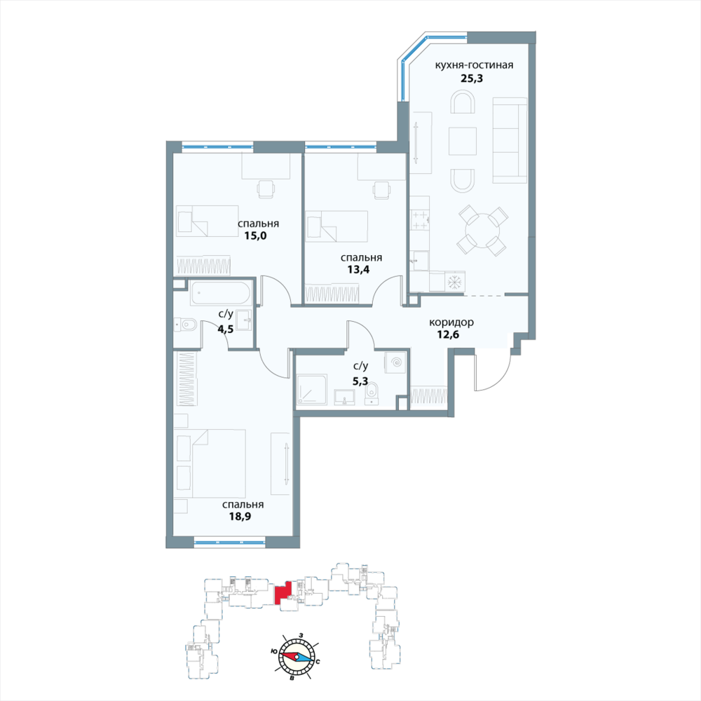 3 комнатная квартира