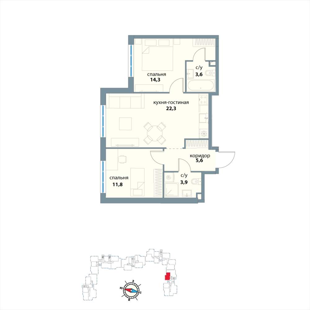 2 комнатная квартира